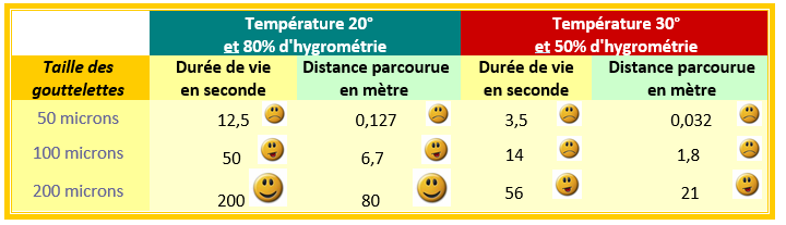 La durée de vie de la gouttelette et sa vitesse augmentent avec sa taille.
